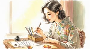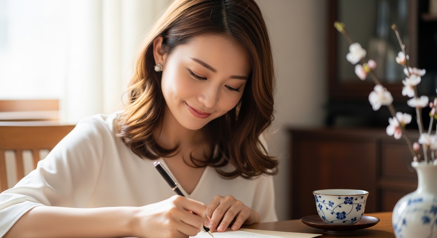 季節を感じさせる上質な和紙や、シンプルで上品な無地のデザインを選ぶと、大人の女性らしい落ち着きと誠実さが伝わります。